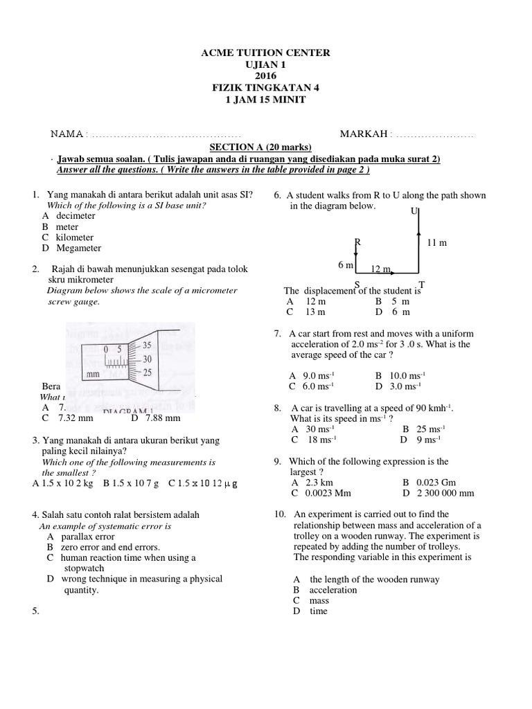 Ujian Bulanan 1 Fizik Tingkatan 4 Pdf